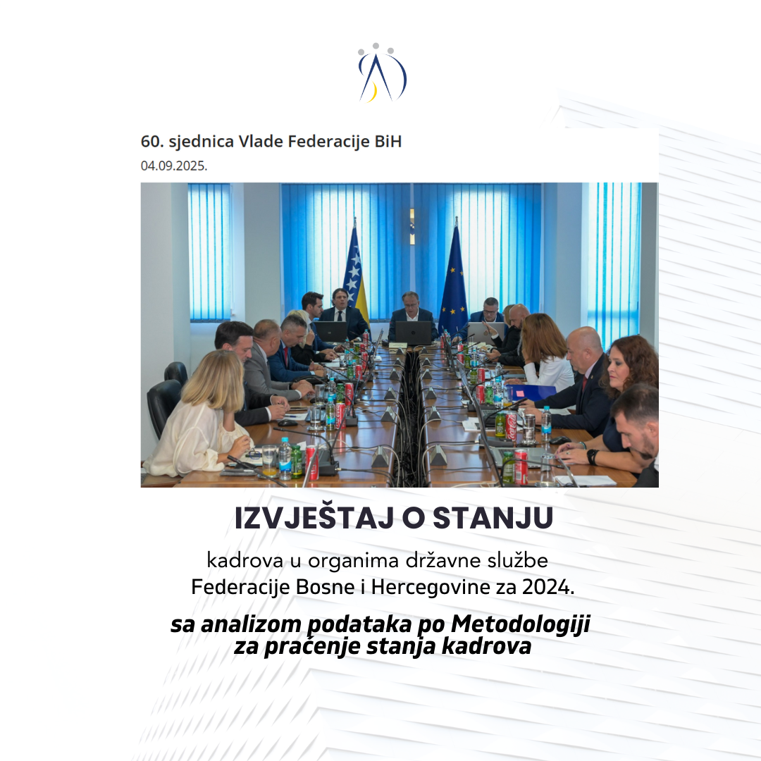 Izvještaj obuhvata ključne pokazatelje o broju i strukturi državnih službenika u organima državne službe Federacije BiH, uključujući spolnu zastupljenost, starosnu i obrazovnu strukturu te dinamiku zapošljavanja i postavljenja u 2024. godini.